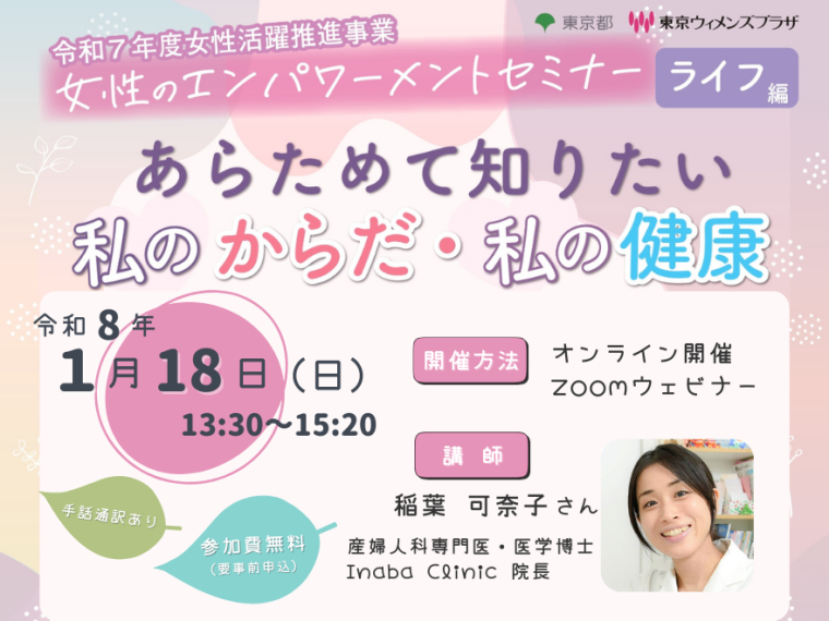 【東京ウィメンズプラザ】2026/1/18(日)開催! 女性のエンパワーメントセミナー ライフ編