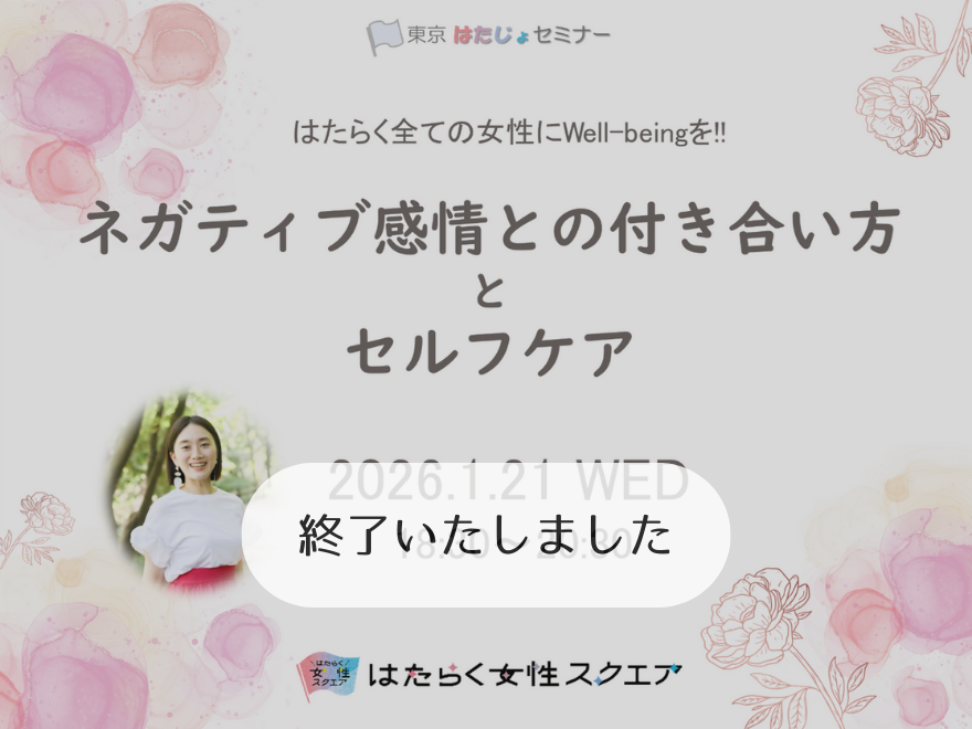 【終了いたしました】2026/1/21(水)東京はたじょセミナー はたらく全ての女性にWell-beingを!!~ネガティブ感情との付き合い方とセルフケア~