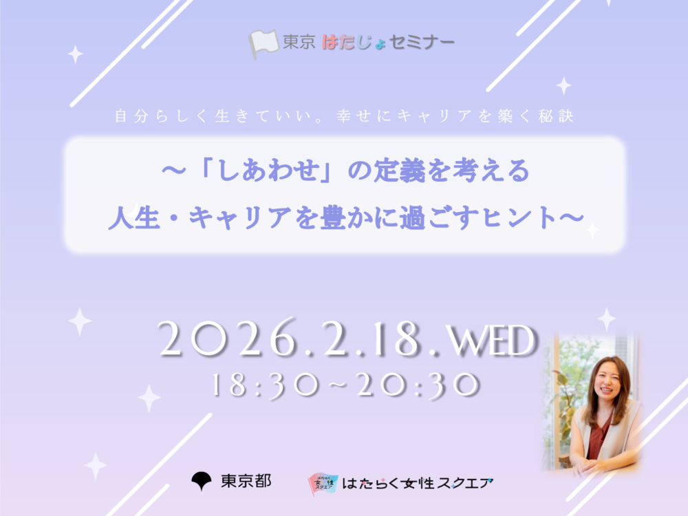 2026/2/18(水)東京はたじょセミナー 自分らしく生きていい。幸せにキャリアを築く秘訣~「しあわせ」の定義を考える人生・キャリアを豊かに過ごすヒント~